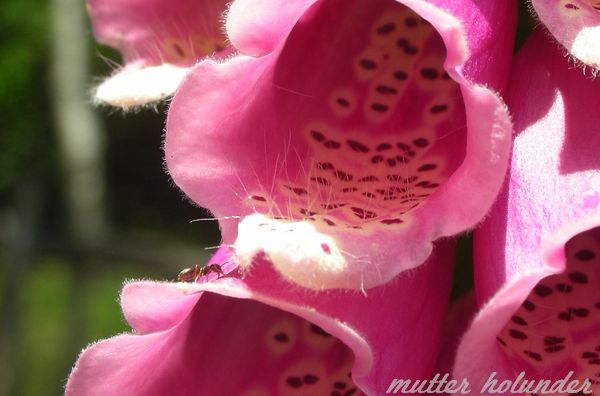 Die wunderschönen, aber auch gefährlich giftigen, Fingerhutpflanzen wuchsen in unserem Bergurlaub überall im Garten. Unsere drei Hunde passten gut auf, dass hier kein Fuchs auf dumme Ideen kommen konnte…