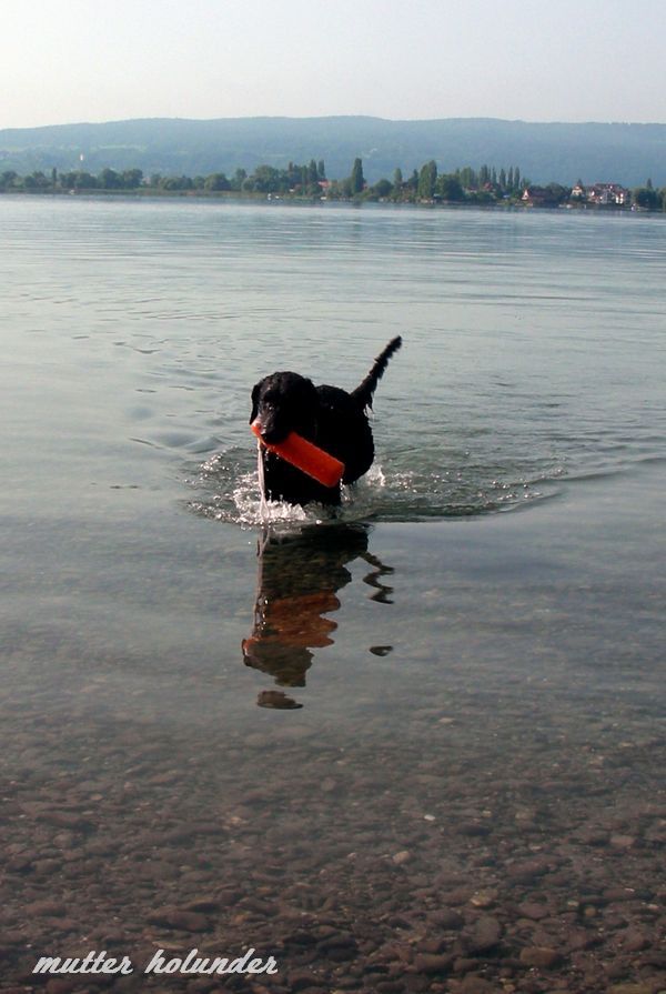 Artigerweise haben die Retriever den Dummy jedesmal wieder zurück geholt. Soll ja wohl auch so sein, denn dazu sind sie ja schließlich gezüchtet.