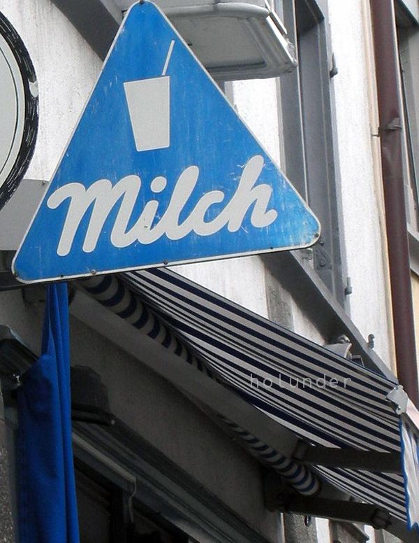 Das Milch-Schild hängt über einem kleinen Tante-Emma-Laden in Zürich. Beim nächsten Mal gehe ich rein und schaue mal, ob und wie man dort Milch einkaufen kann.