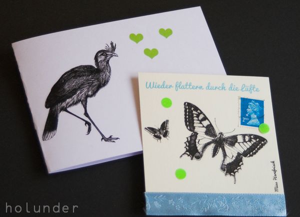 Dafür – welch eine Freude – ist die Karte der zweiten Woche nun bei mir angekommen. Vielen Dank, Sabine ! Ein zarter Schmetterling flatterte herein.