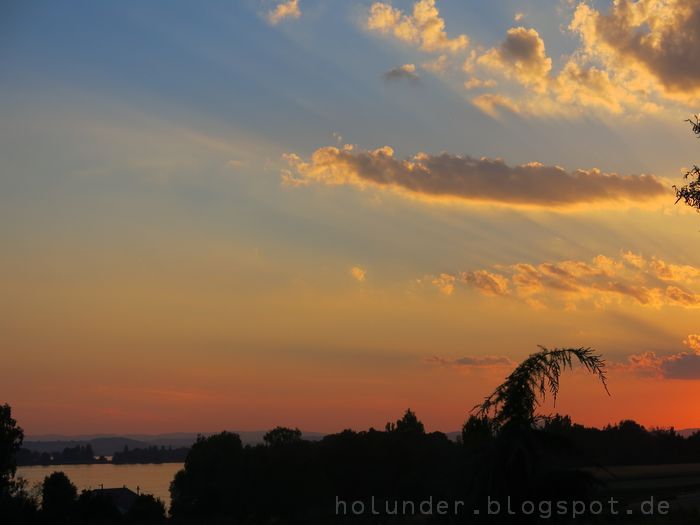 Ganz schön atemberaubend, der Abendhimmel über dem See! Was für ein Glück hast du, solche Ausblicke dicht vor der Tür zu haben!