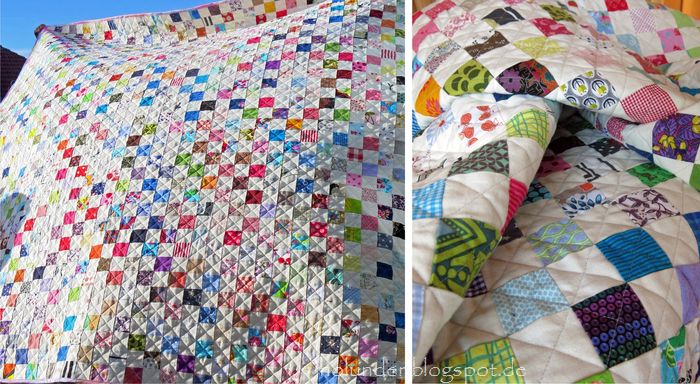 Liebe Andrea, was für eine herrliche Arbeit! So kleinteilig abwechslungsreich und doch so groß! Ich liebe die Farbenvielfalt und die Diagonalen ( und ein bisschen freu ich mich, kleine Reste, die ich kenne, zu entdecken ). Ich bewundere deine Ausdauer und freue mich mit dir.