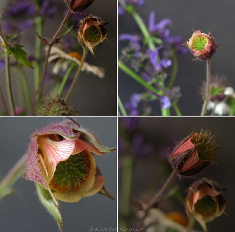 Seht Ihr dem Benediktswurz das Rosengewächs an? Ich kann mich nicht satt sehen an der zarten, rosanen Schönheit, ihrem Wandel bis zur Reife, in der sie die Nussfrüchtchen nach oben streckt.