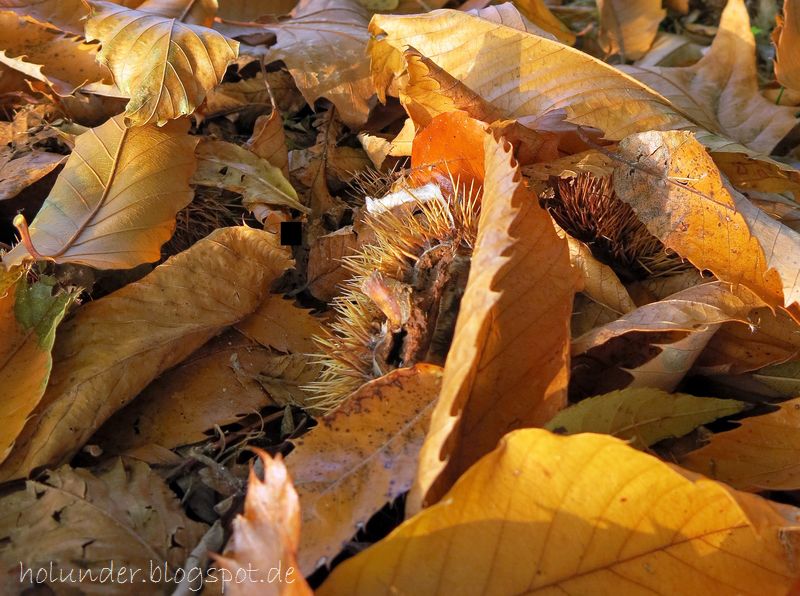 Über ein paar Maronis am Wegrand freue ich mich, den Rest haben schon andere Liebhaber feiner Eßkastanienrezepte gefunden.