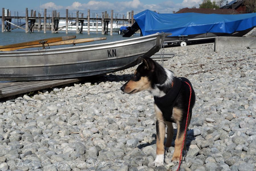Der Kurzhaarcolliewelpe gilt wohl damit verglichen als pflegeleicht. Ha! Sturheit, Beharrlichkeit, Dreistigkeit gegenüber alten Hündinnen und überbordendes Temperament bringt er jedenfalls mit.