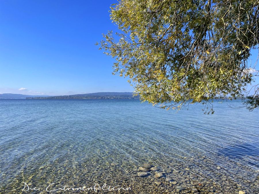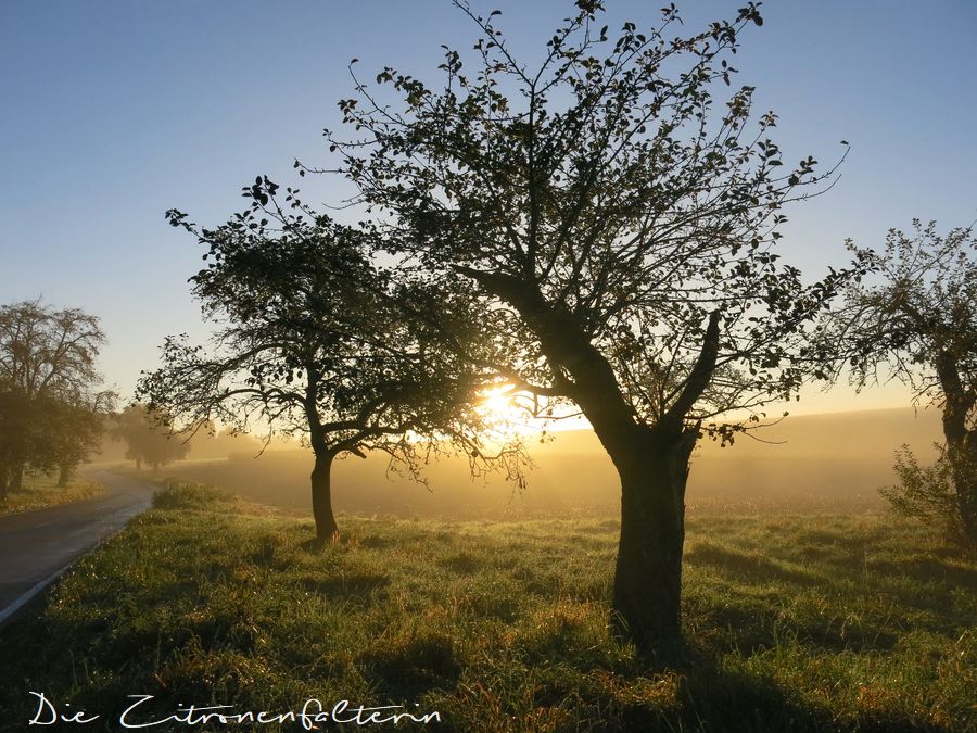 Oh, was hast du wieder für schöne Fotos! Ich finde das letzte mit dem tollen blauen See und das, auf dem die Sonne durch die Obstbäume scheint, ganz besonders toll. 🙂