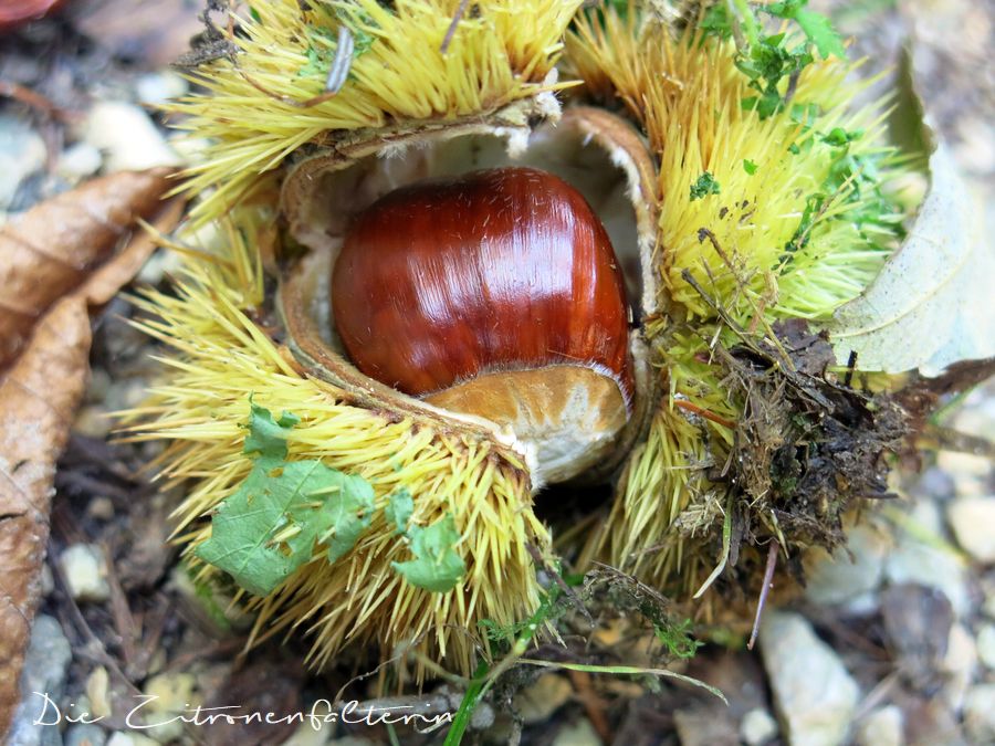 auf der Abendrunde rollten uns ein paar Maroni und Walnüsse über den Weg. Gut, dass wir eine Taschenlampe zur Hand hatten. Leider sind dieses Jahr nicht wirklich viele Esskastanien an den hiesigen Bäumen.