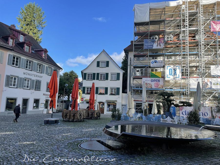 Unten nochmal mit Blick auf die Baustelle gegenüber des Münsters und den Brunnen.