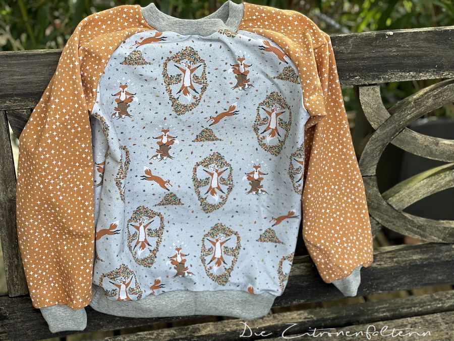 Was Sweatshirtstoff angeht, gibt mein Stoffschrank gerade so gut wie gar nichts mehr her. Also musste ich doch noch drei zusammenpassende Stoffe von einer Stoffserie kaufen, die sich gut kombinieren lassen. Wenigstens Bündchen kamen aus dem Fundus. Jetzt hieß: nähen, so dass keine Reste mehr bleiben.