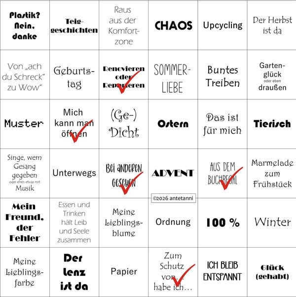 verlinkt bei der Linkparty von antetanni BINGO 2026 , die eine tolle Motivationshilfe ist.