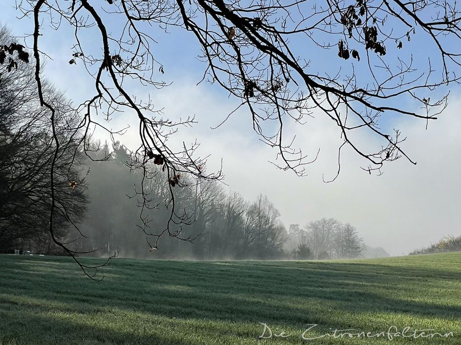 Wenn der Morgen am See mal wieder mit dickem Nebel startet, ist es echt ein Erlebnis, wenn sich während der Hunderunde auf der etwas höher gelegenen Strecke der Nebel hebt und das Himmelsblau und die Sonne zum Vorschein kommen. Allerdings muss ich dann auch wieder hügelabwärts und tauche erneut in den Nebel ein…