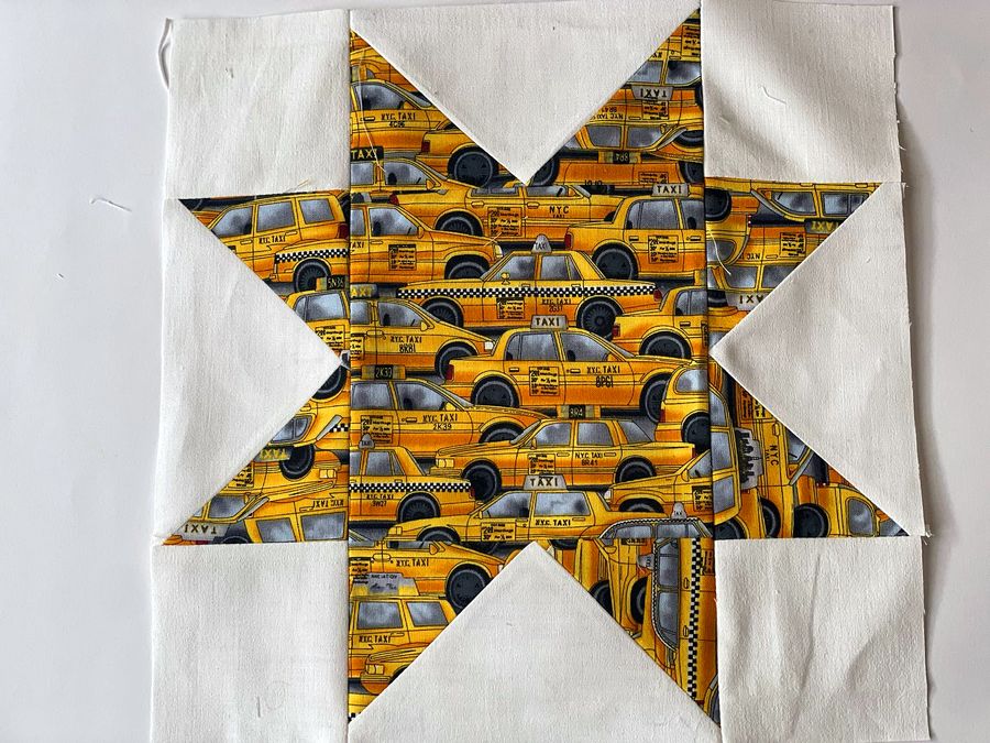 was für ein besonderer Stoff mit den vielen Taxis drauf. Und in gelb schauen die Sterne auch total schön aus.