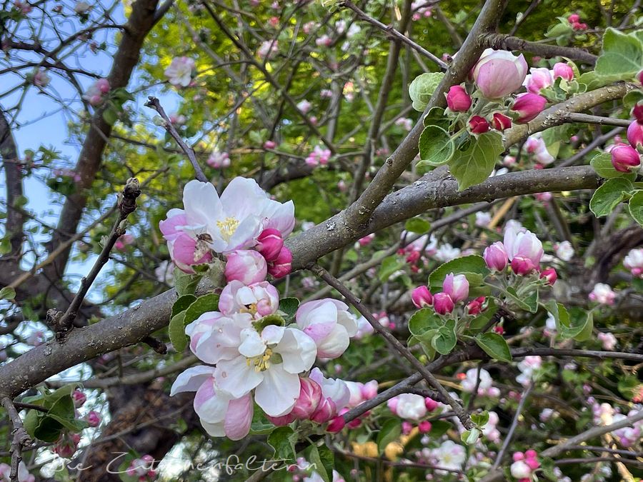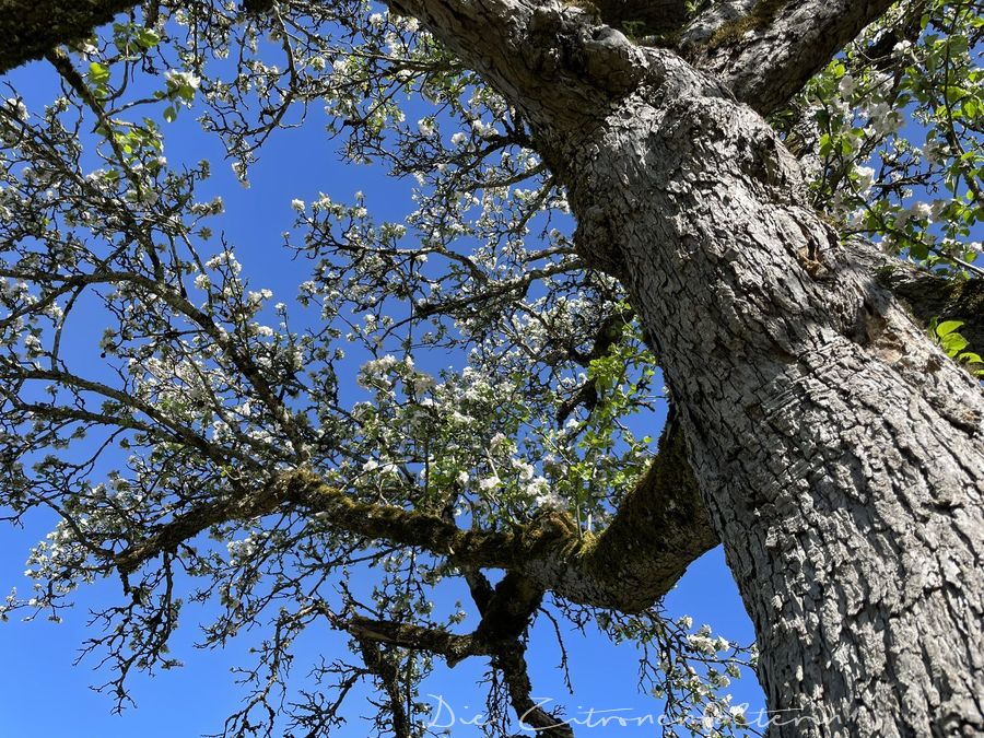 Draußen in der Natur blüht und grünt es gerade so herrlich, dass man am liebsten mit allen Sinnen die Herrlichkeit einsaugen möchte. Hier in der Obstbaumlandschaft gibt es natürlich überall blühende Bäume.