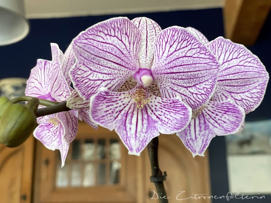 Drinnen habe ich auch eine große Freude, denn meine Orchidee blüht derzeit. Für mich ist das was Besonderes, denn für Orchideen habe ich eigentlich kein besonderes Händchen. Diese hier hat meine Pflege tatsächlich überlebt und noch belohnt.